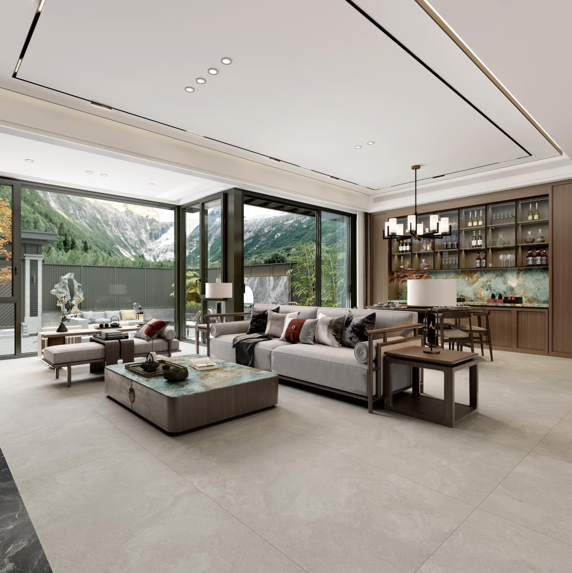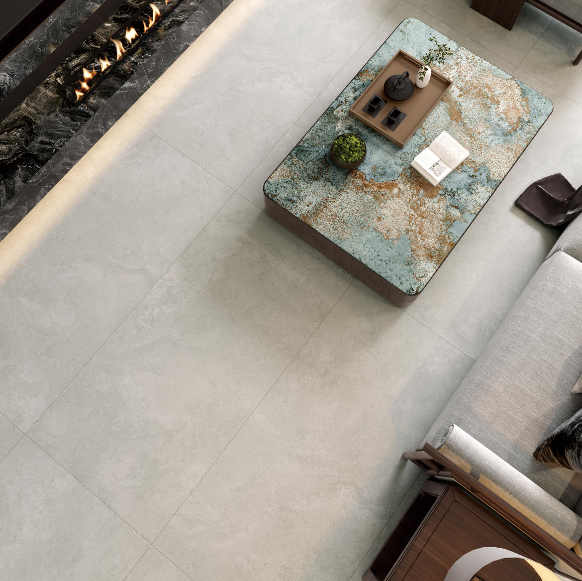 獨特時尚的米杏色調,變幻莫測的漸變紋理流動,彷如歲月的雕琢,給空間帶來連貫、完整、延伸的無垠視界。
