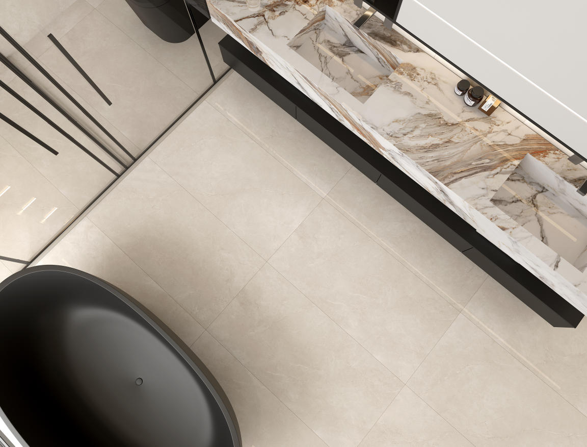 自然純粹的米灰底紋上漂浮著淡淡的銀白色紋理,是時光賦予的溫柔,表面紋理簡約、悅目,悠然地展現出米灰的深沉與靜謐,記錄時光的流轉,創造出一片獨特的空間奇跡。